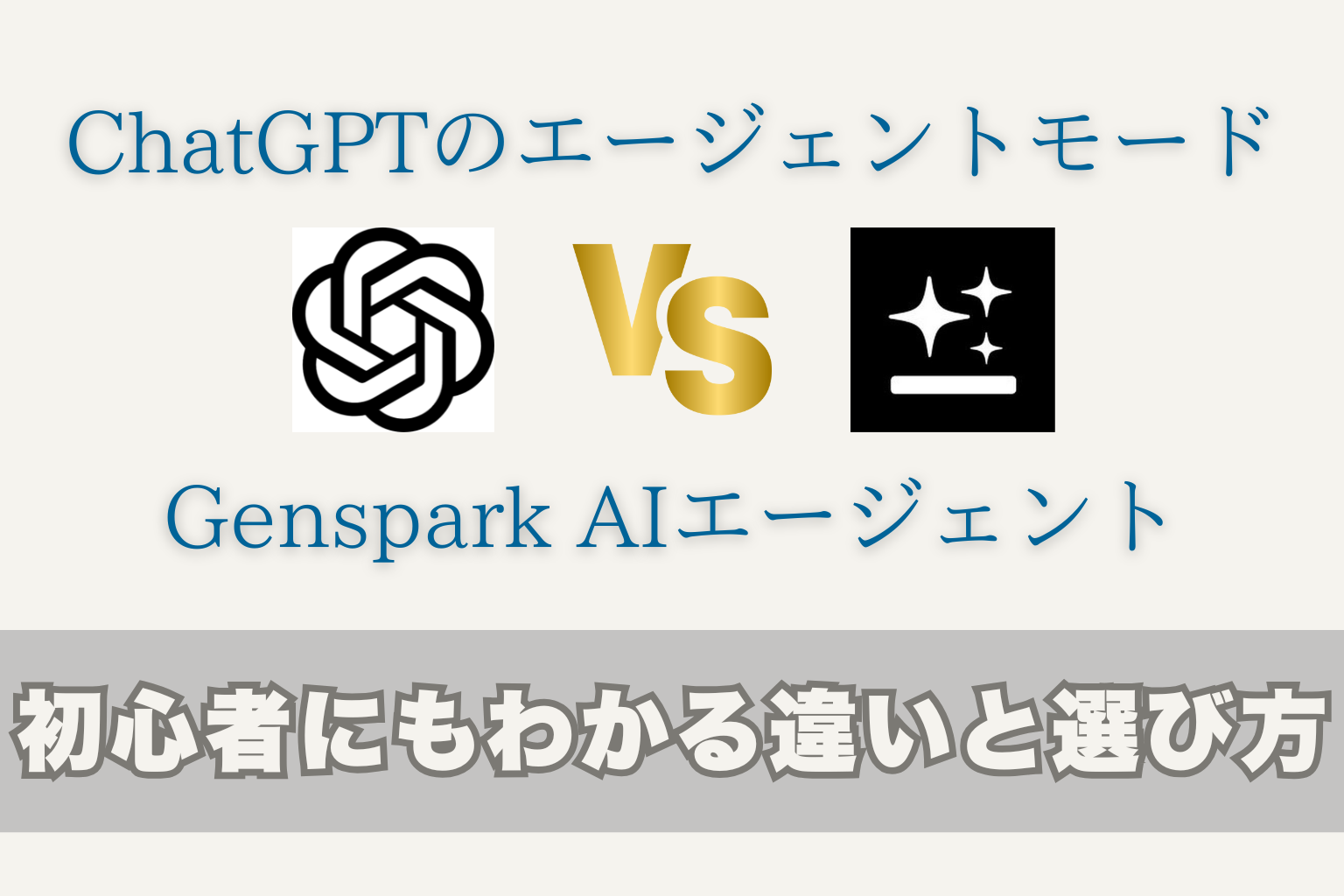 OpenAIの「ChatGPT エージェントモード」と、注目のノーコードAIツール「Genspark AIエージェント」。 この記事では、それぞれの特徴・できること・向いている人を初心者にもわかりやすく解説します。